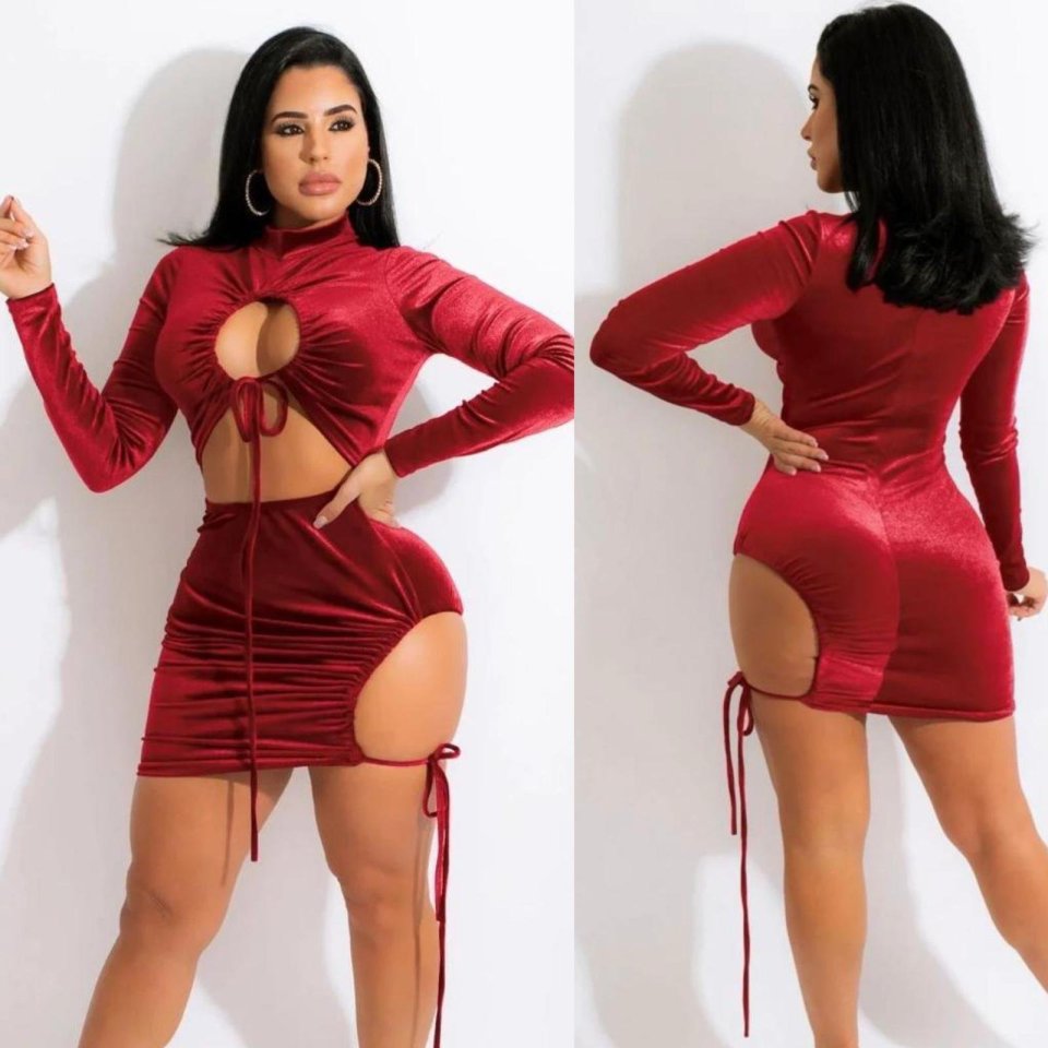 Kadın Uzun Kollu Full Dekolte Detay Kadife Kumaş Elbise
