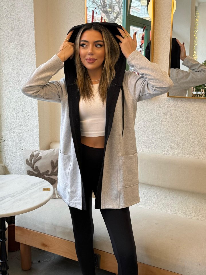 Kadın Uzun Kollu Kapşonlu Bağcıklı Cepli Iki Iplik Ceket