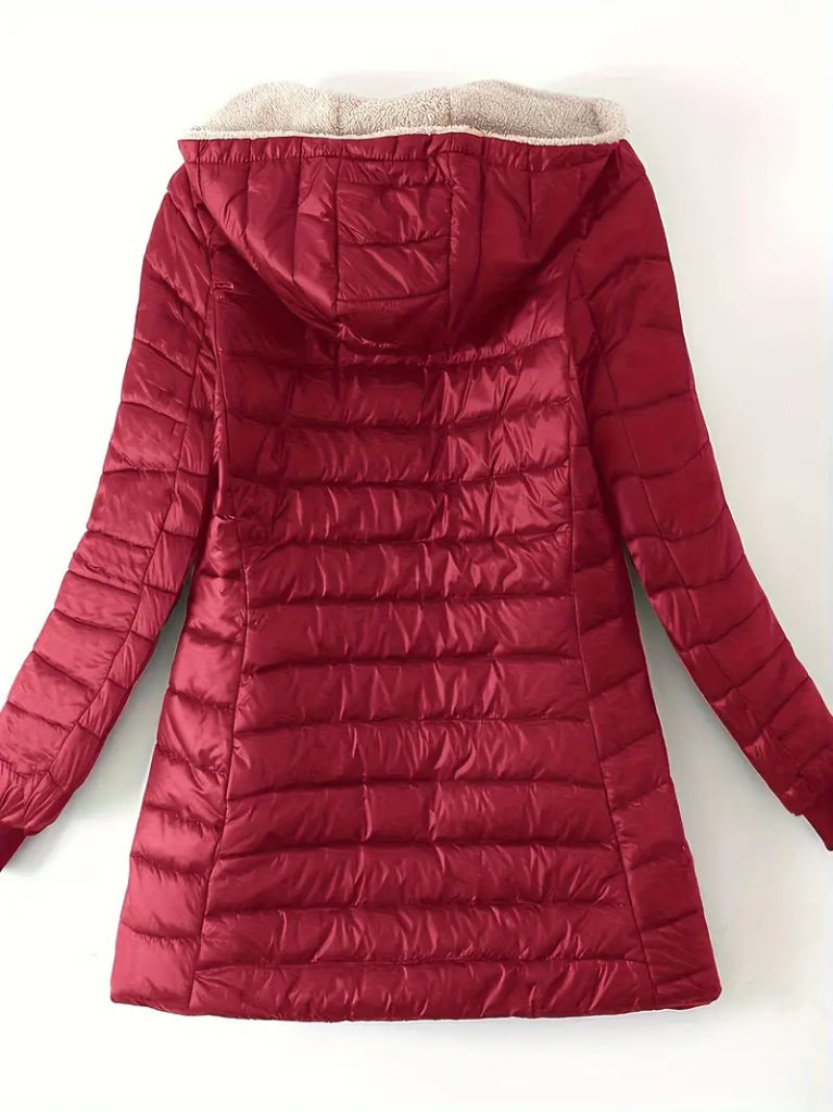 Kadın Uzun Kollu Kapşonlu Cep Detaylı Fermuarlı Orta Boy Mont