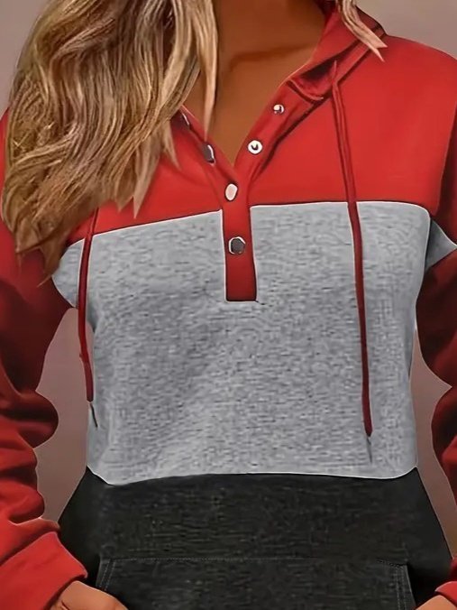 Kadın Uzun Kollu Kapşonlu çok Renkli Iki Iplik Bluz