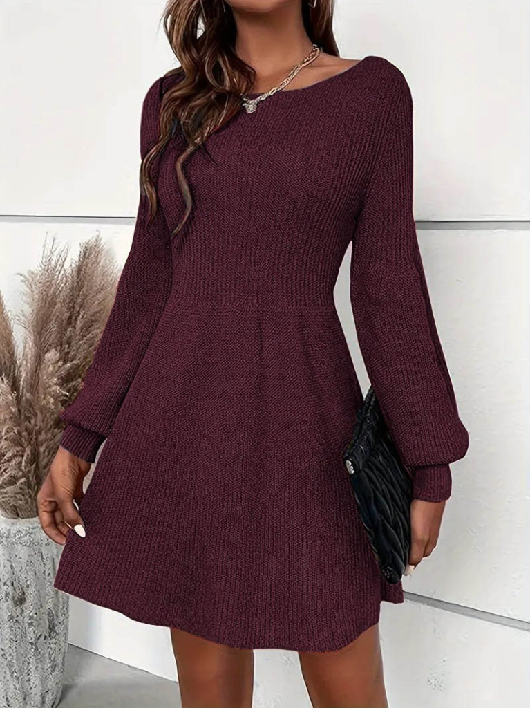 Kadın Uzun Kollu Kayık Yaka Kısa Triko Elbise