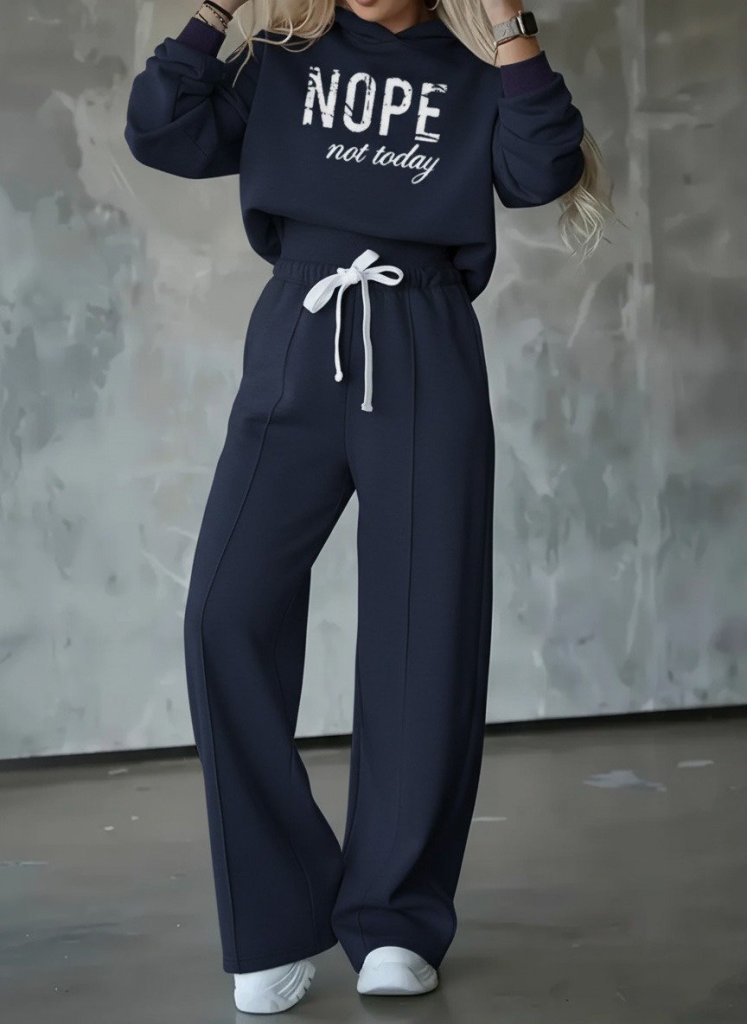 Kadın Uzun Kollu Nope Baskılı Beli Ribanalı Ikili Takım