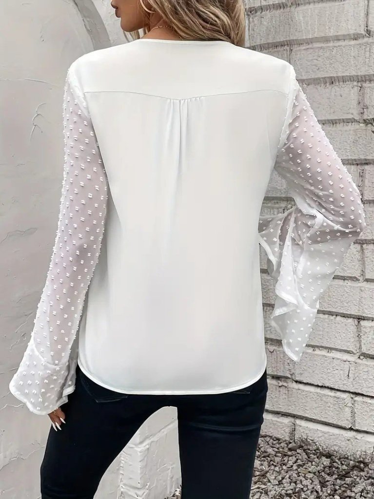Kadın Uzun Kollu V Yakalı Kolları Ispanyol Detayı Sandy Bluz