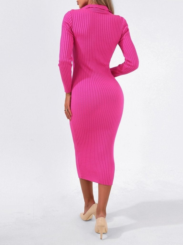 Kadın Uzun Kollu Yakalı Triko Elbise