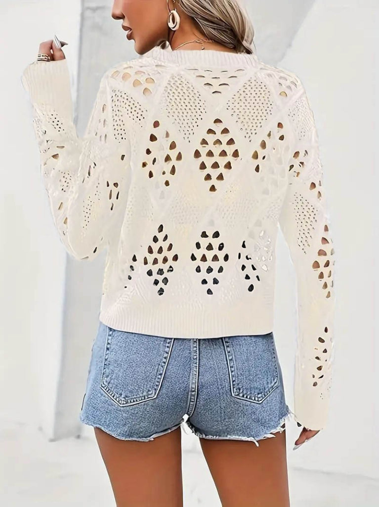 Kadın Uzun Kollu Yuvarlak Yaka Delik Desenli Triko Bluz