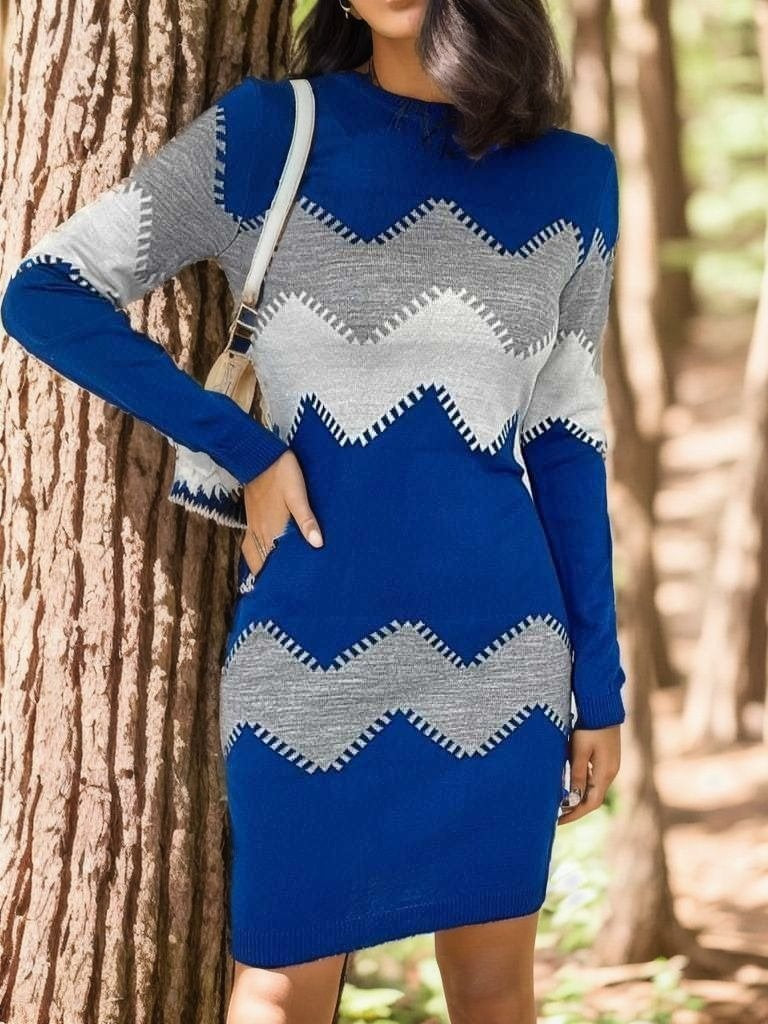 Kadın Uzun Kollu Zigzag Desen Triko Elbise