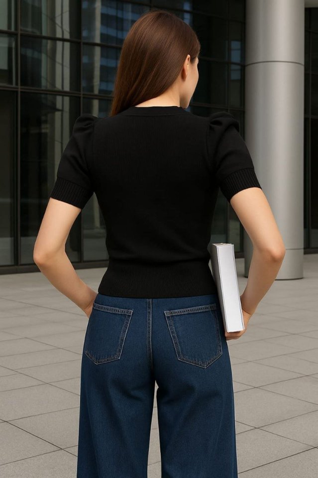 Kadın V Yaka Önü Büzgü Detaylı Triko Bluz