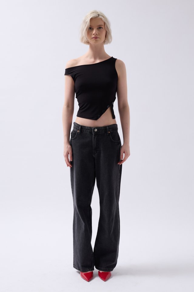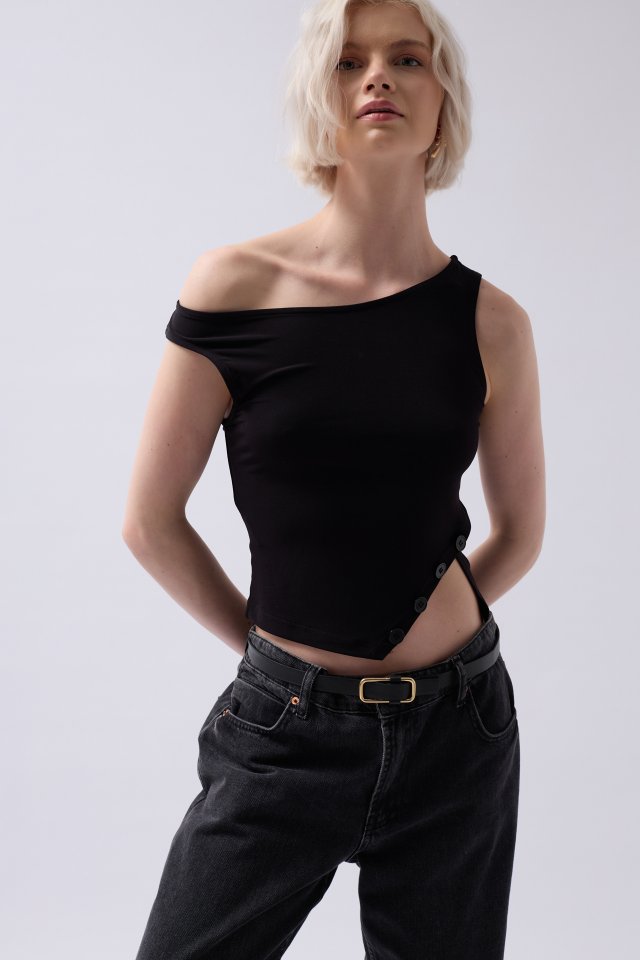 Kayık Yaka Yırtmaç Detay Bluz
