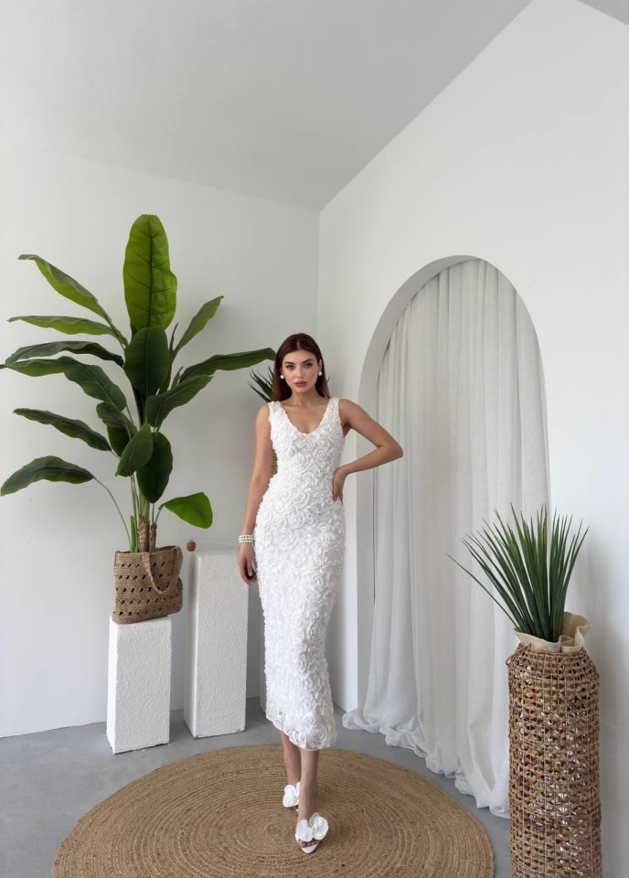 Kren Gül Detaylı Elbise