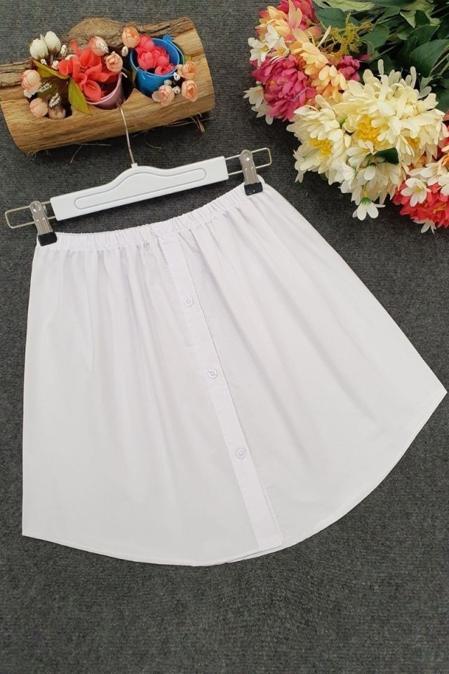 Lastikli Düğmeli Kurtarıcı Gömlek Altı Eteklik -Beyaz