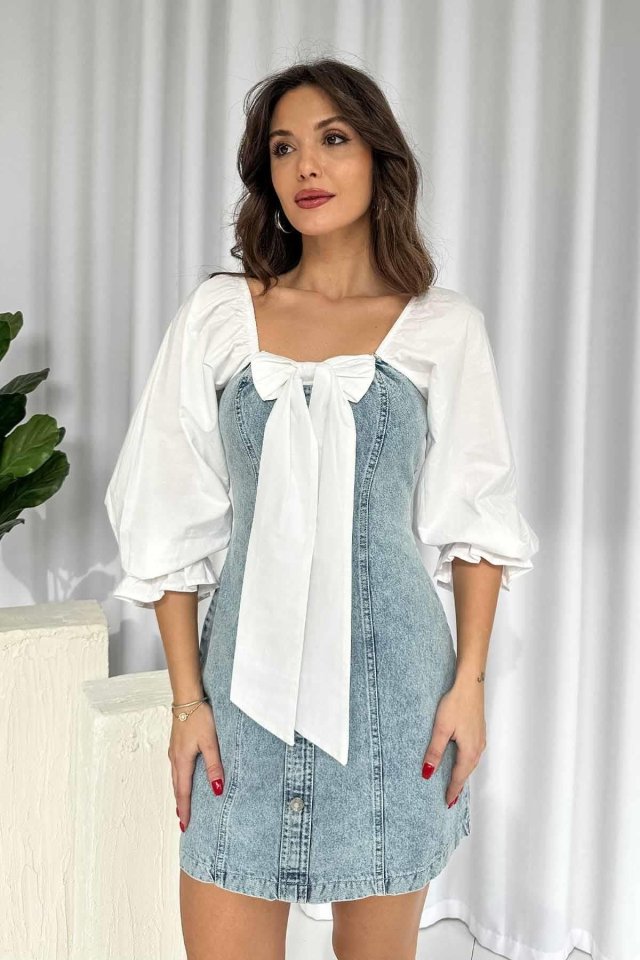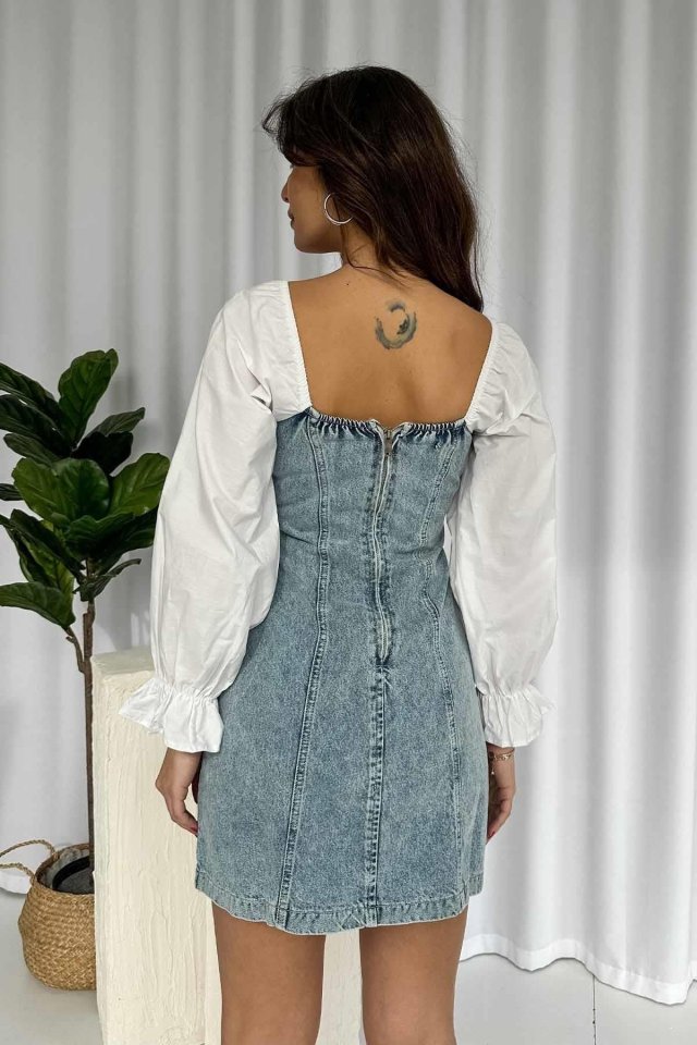 Mavi Önü Fiyoklu Kot Elbise
