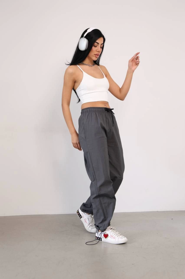 Praşut Kumaş Paça Cepli Baggy Eşofman - Antrasit