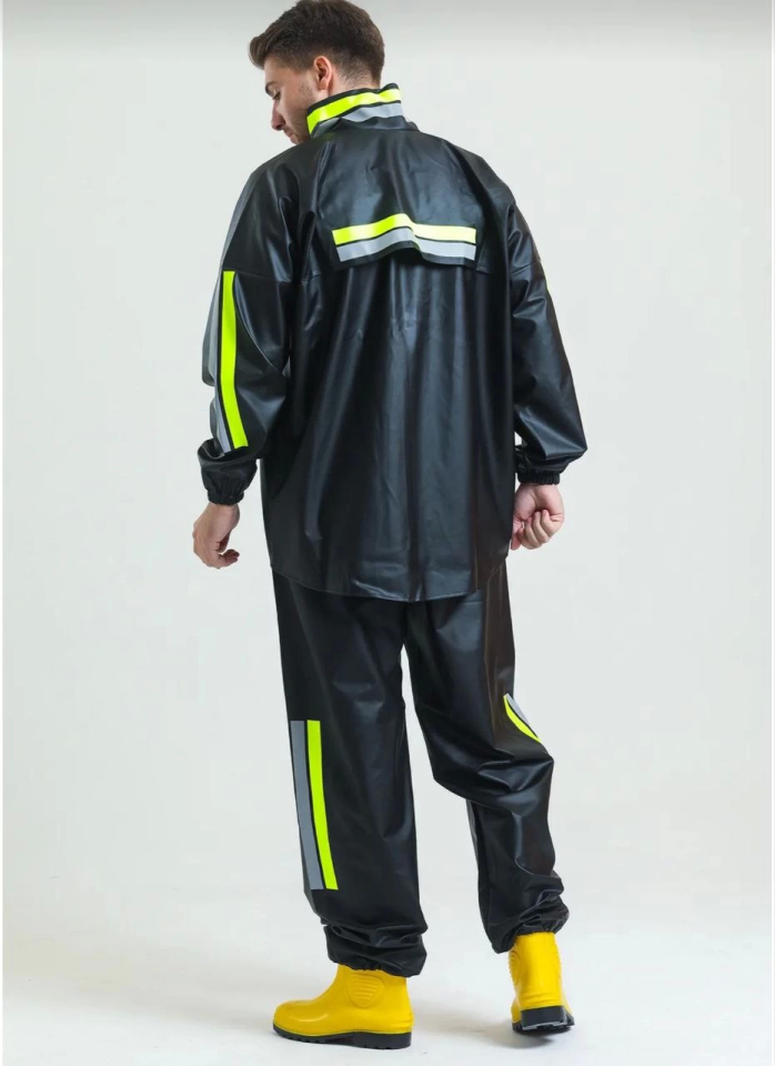 Premium Motorcu Kurye Yağmurluk Takım Su Geçirmez PVC Kumaş Reflektörlü TÜBİTAK Onaylı - Siyah