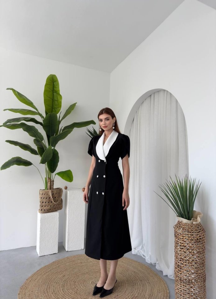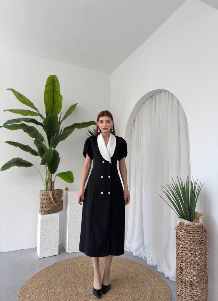 Reta Düğme Detaylı Elbise