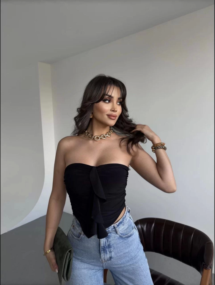 Sandy Asimetrik Büzgülü Straplez Bluz - Siyah