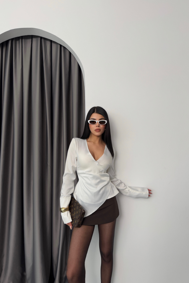 SATEN ANVELOP BLUZ MANŞET KOL - Beyaz