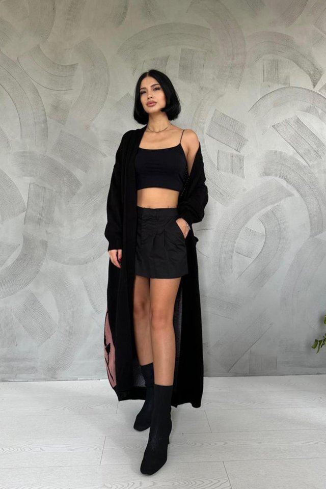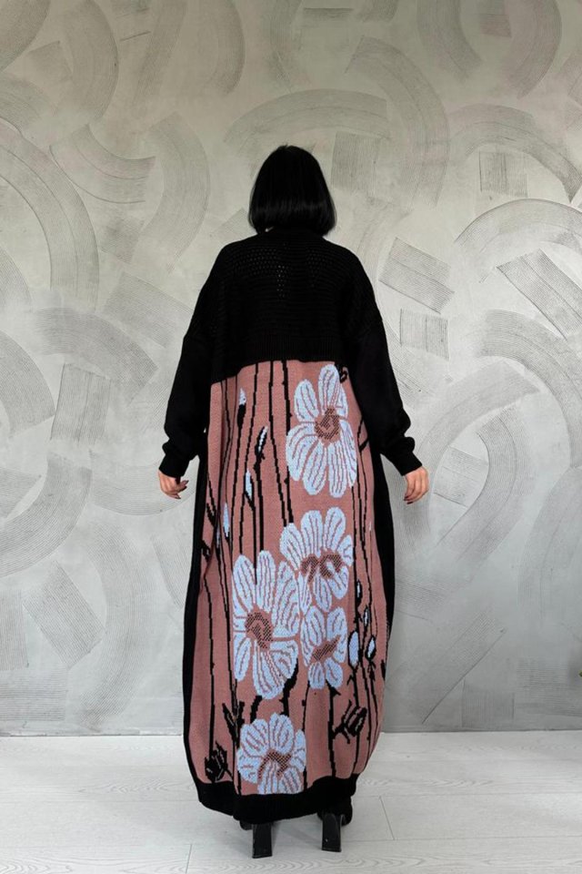 Siyah Arkası Desenli Hırka