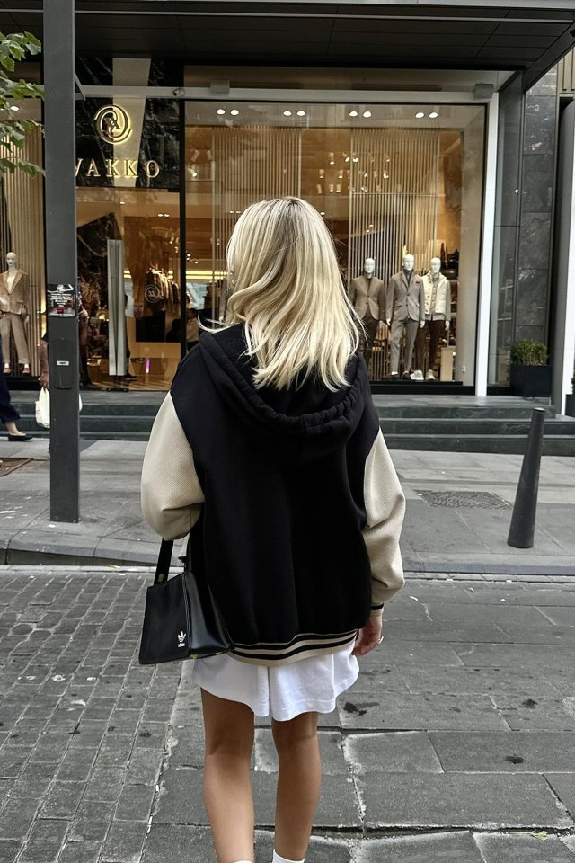 Siyah Kapüşonlu Kolej Mont
