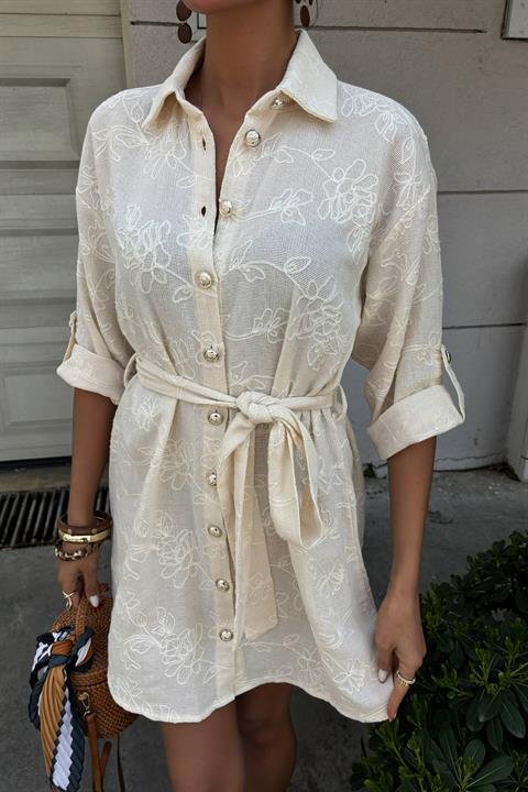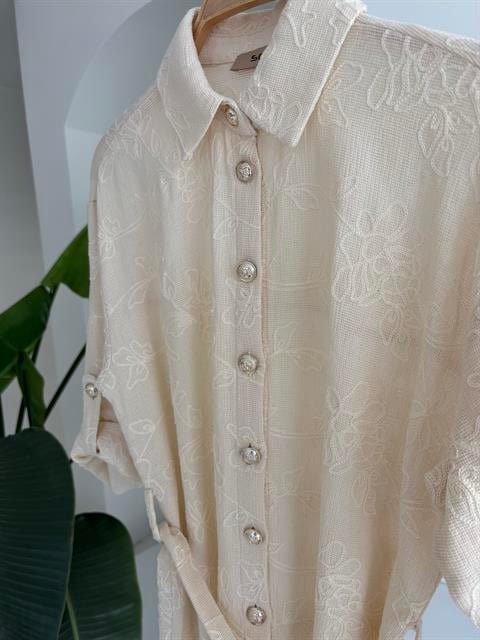 Süzene Nakışlı Ve Gold Düğmeli Elbise 2742