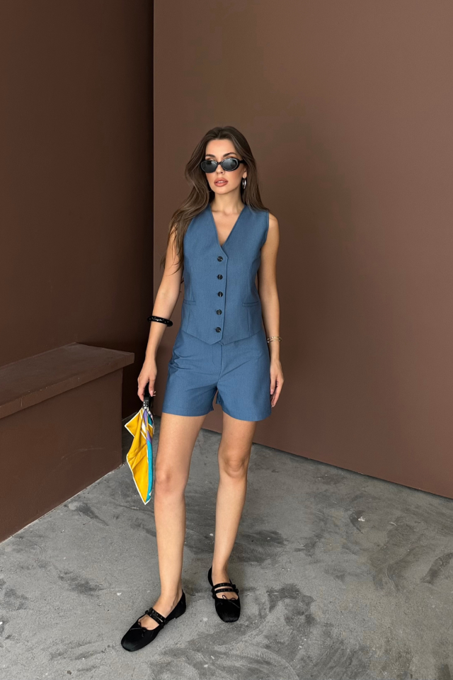 TENCEL YELEK - ŞORT TAKIM - İndigo