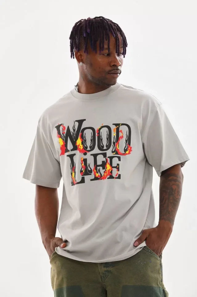 Unisex Baskılı Oversize T-Shirt - Gri