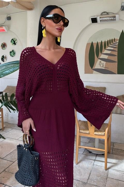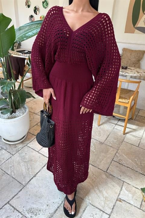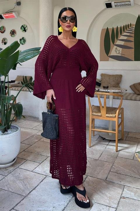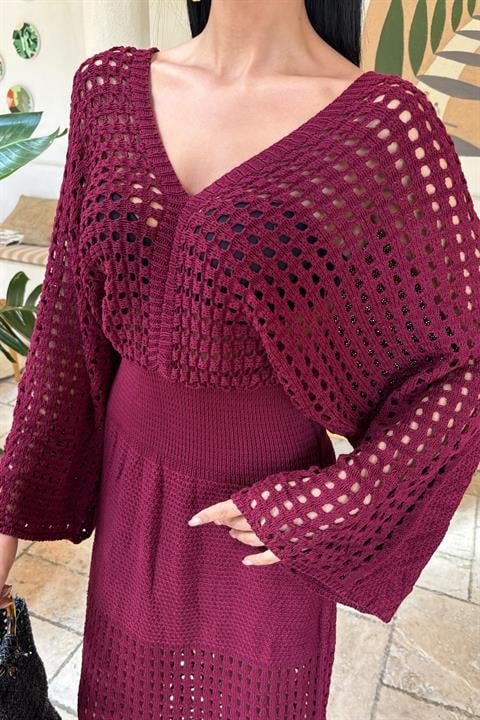 Yarasa Kollu Ajurlu Triko Elbise 2836
