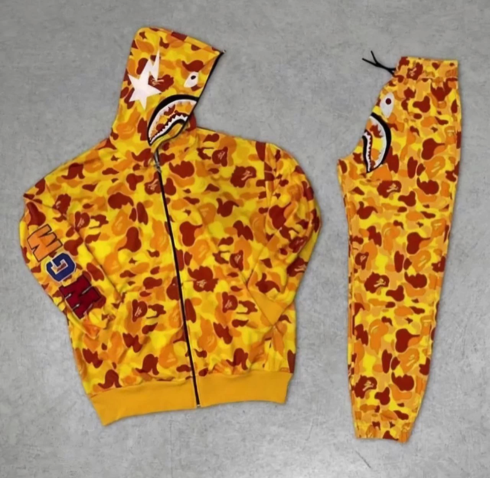 Zıp Fermuarlı Nakışlı Kapşonlu Takım - Sarı